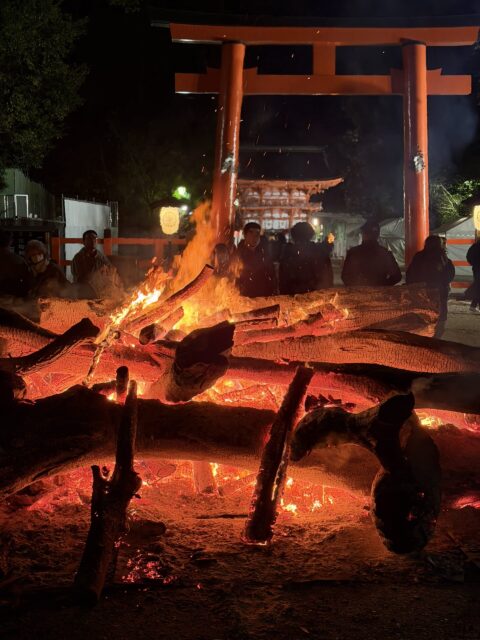 参拝の皆さん、この焚き火で暖を取ってた